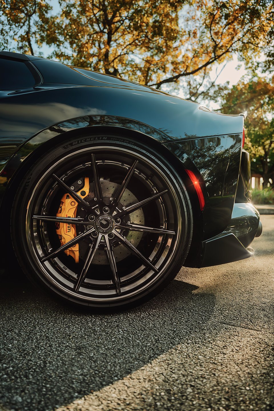 The 812 GTS's silhouette represents the perfect balance of aggression and elegance, its Nero Daytona finish creating a stunning contrast with the Giallo Modena interior. Every line serves a purpose, from the active front grille to the aero bridge on the flanks. The fastback design with its flying buttresses pays homage to Ferrari's legendary front-engine V12s, while incorporating modern aerodynamic solutions that generate both downforce and beauty.