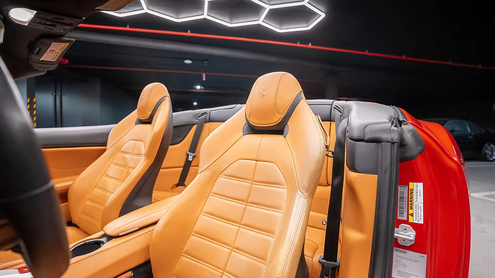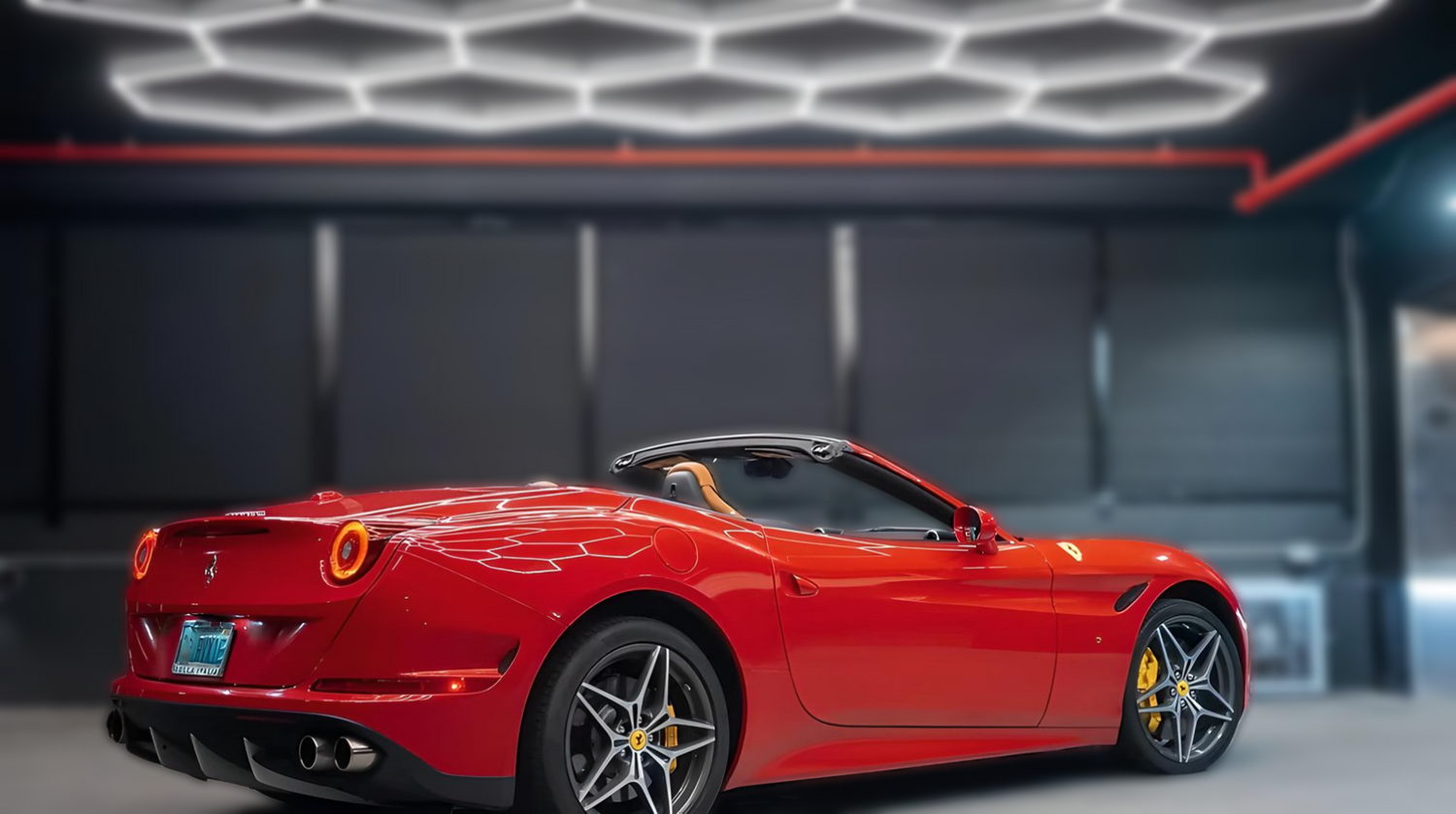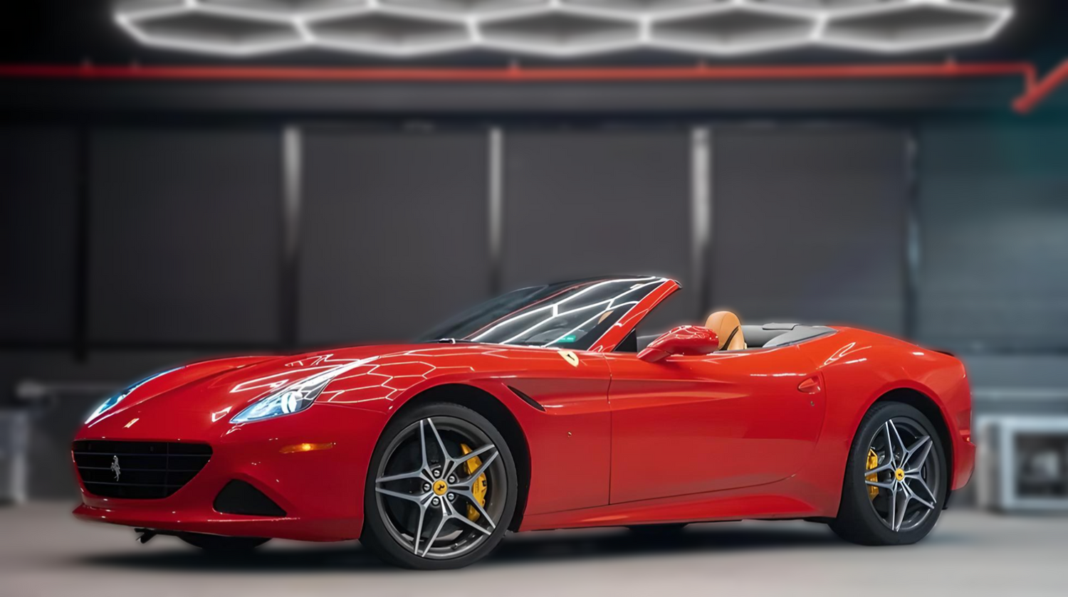 The Ferrari California-T isn't just built; it's crafted. With its sleek, red exterior and convertible design, it’s a head-turner on any street. The hardtop transforms in seconds, giving you the freedom to feel the wind on your face or enjoy the quiet luxury of the coupe. Inside, the plush tan leather seats wrap you in comfort, combining Ferrari’s legendary style with a luxurious driving experience.