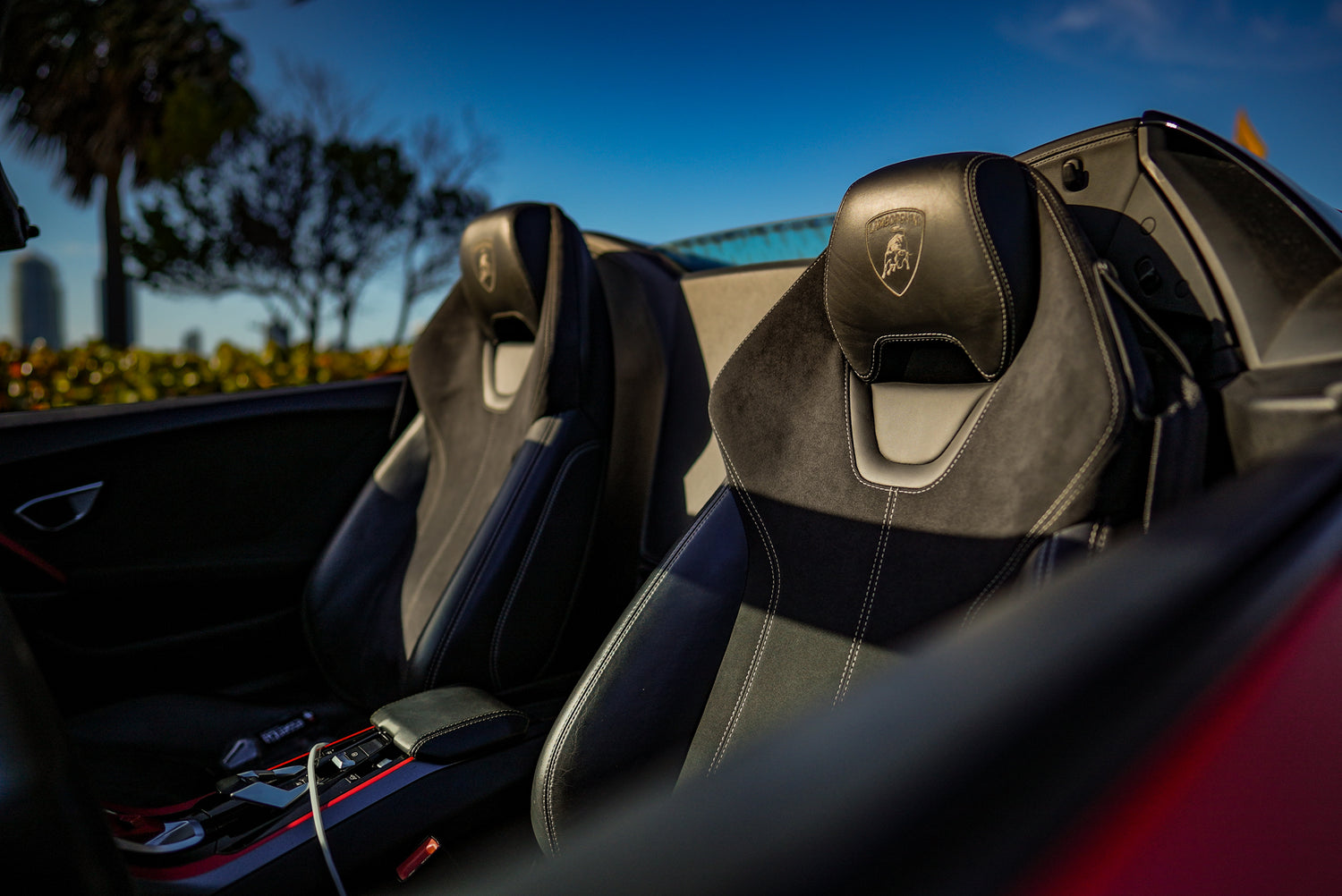 Slide inside, and the first thing you feel is the kind of luxury that redefines comfort. The black Alcantara seats with contrasting red stitching are so soft that they hold you like the true royalty you are. Every button, every dial, every inch of this cabin is designed with you in mind. The digital instrument cluster is not just informative, it’s immersive, putting you in total control of this beast. And when you press the button to retract the roof, the cabin transforms into an open-air symphony of speed and sound. Inside the Huracán, it’s the ultimate escape and the doors to your new life.