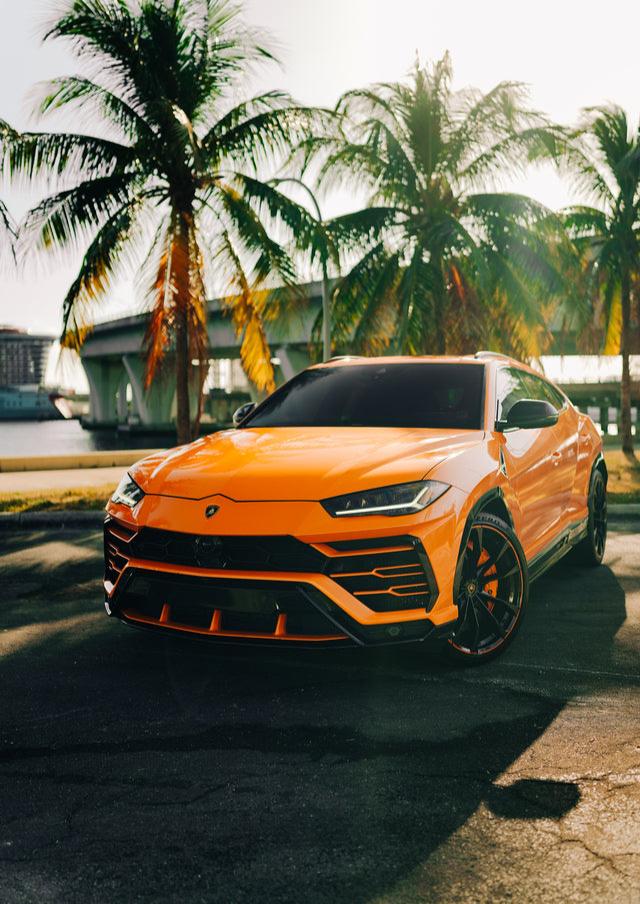 First impressions? Handled. The Lamborghini Urus in Arancio Borealis (that bold, fiery orange) does more than just catch eyes, it stops people in their tracks and it's the ultimate neck turner. It’s wide, sharp, and unapologetically bold, with sculpted lines that scream confidence. Those jet-black wheels with orange accents? They look like they were designed to dominate every street they touch. The front grille has that aggressive Lamborghini DNA, while the sharp LED headlights slice through the night. You don’t just arrive in this SUV. You make an entrance people will always remember.