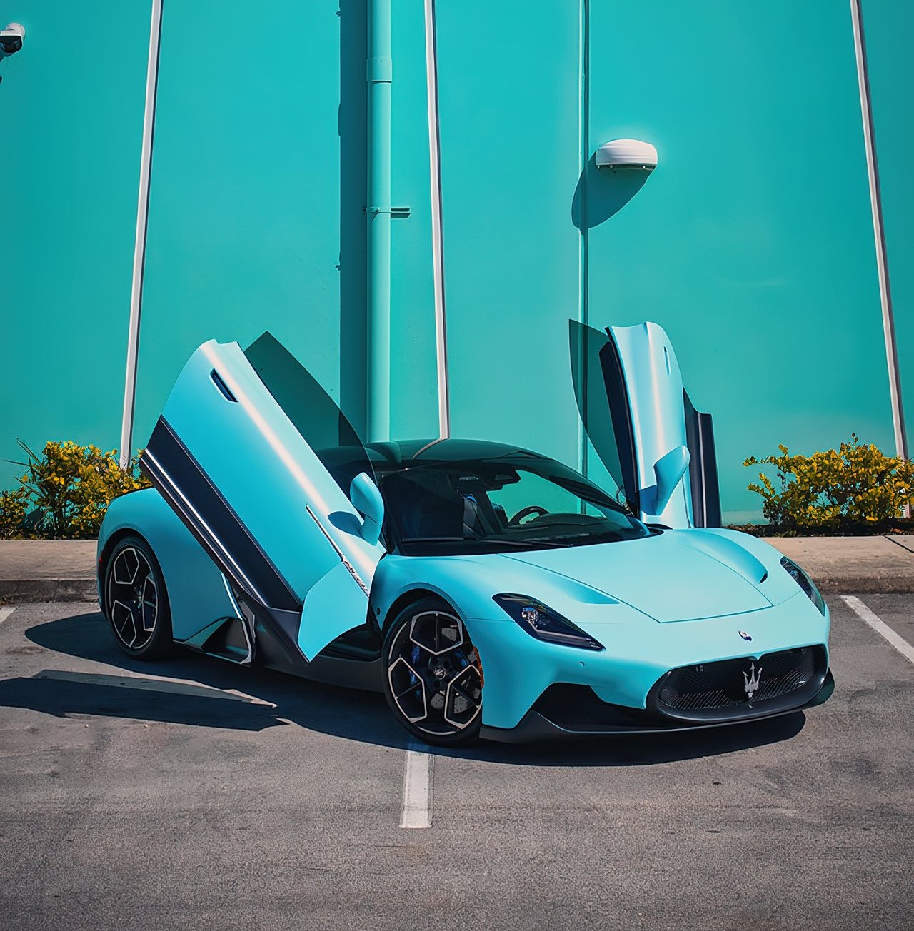 The Maserati MC20 is an Italian masterpiece designed to make a statement. Those butterfly doors? They’re not just functional, they’re a spectacle. Every angle of this car is an invitation for admiration, from its razor-sharp lines to its iconic Trident grille. The tiffany-blue exterior isn’t just stunning; it’s a magnet for attention. When you pull up, you’re not just arriving. You’re making an unforgettable debut.