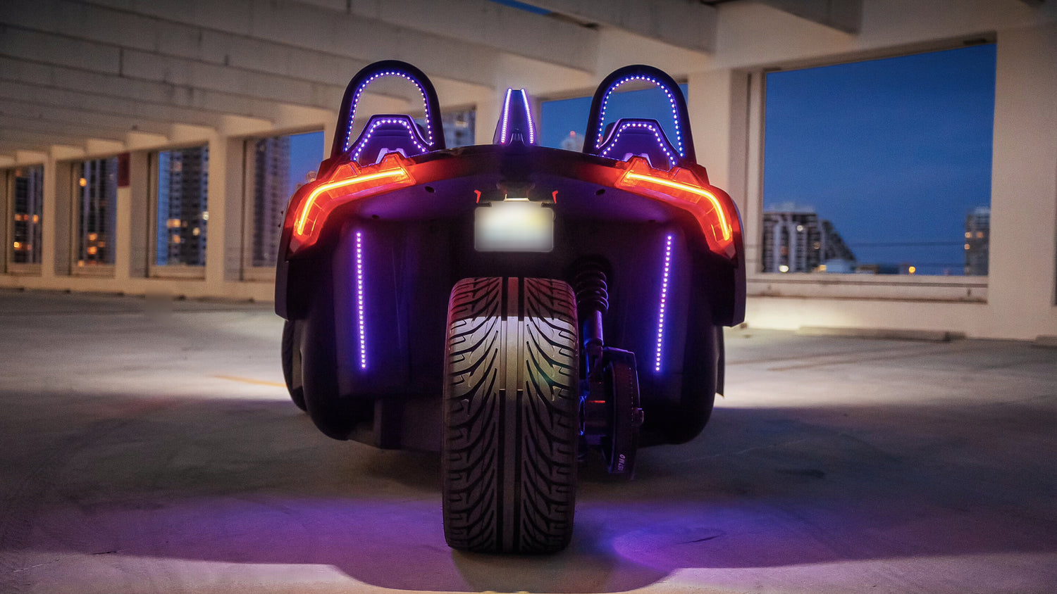 This isn’t just a vehicle. It’s a statement. The edgy, aggressive design of the Slingshot SLR demands attention. With its futuristic lights and sleek lines, you’ll look good whether you’re parked or cruising at night.